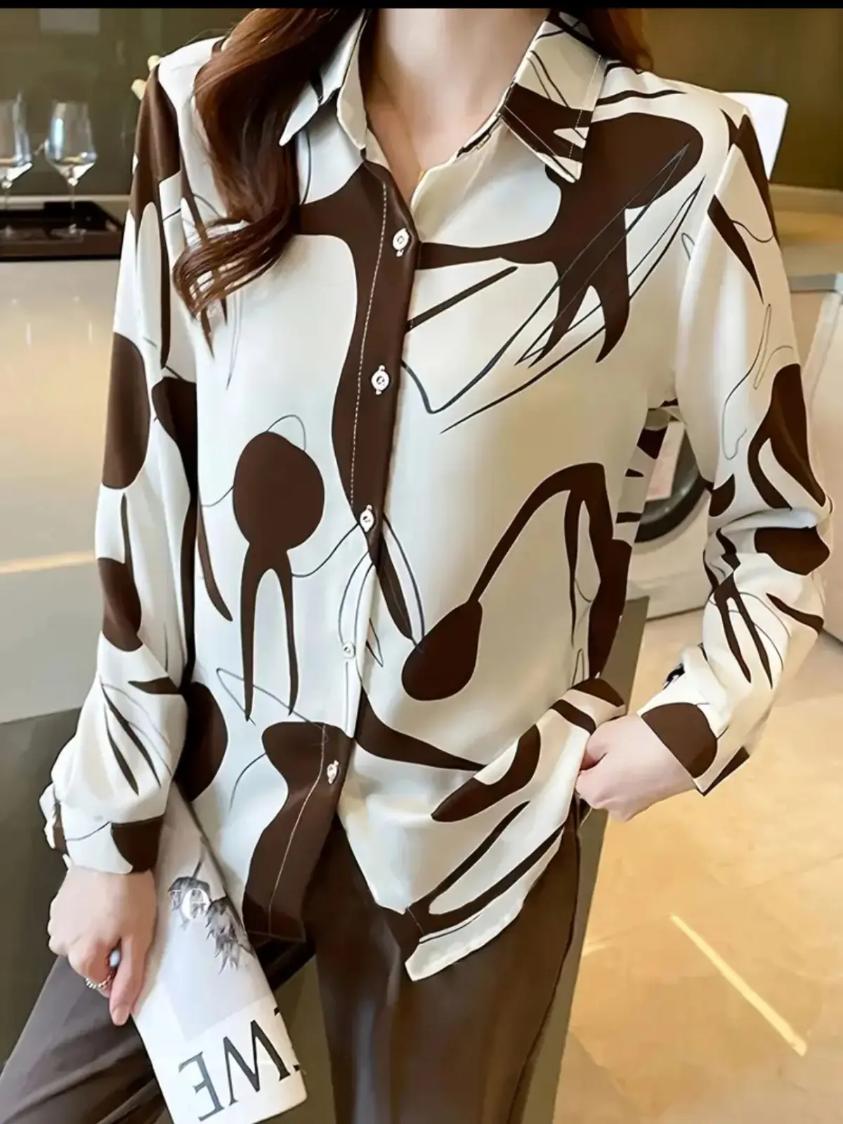 قميص ابيض وبني مريح على اللبس