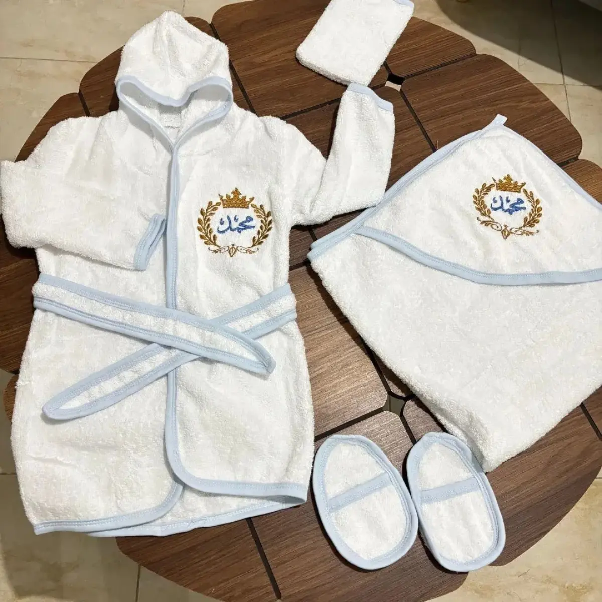 روب حمام مع منشفة وليفة بإسم البيبي تطريز